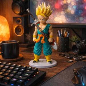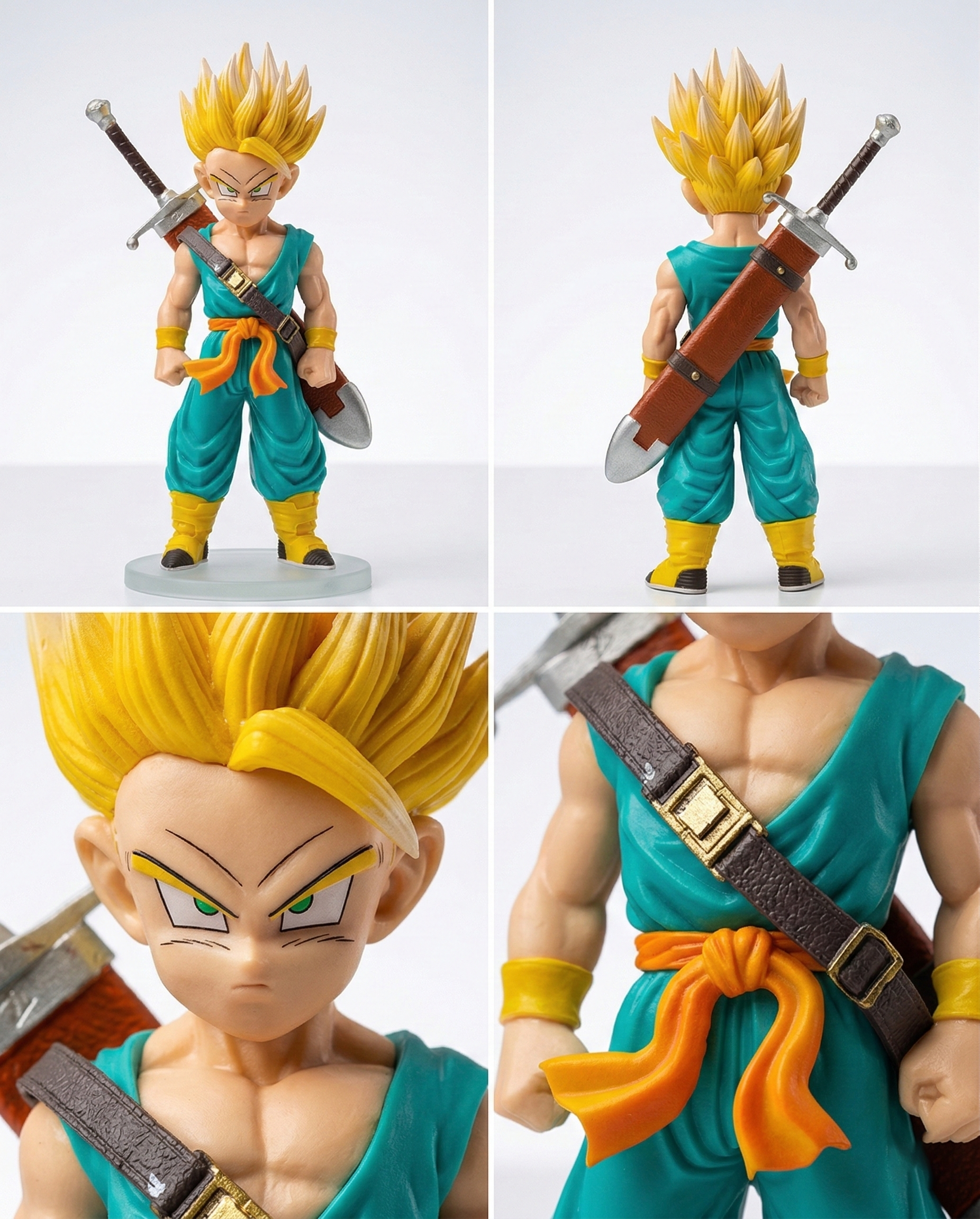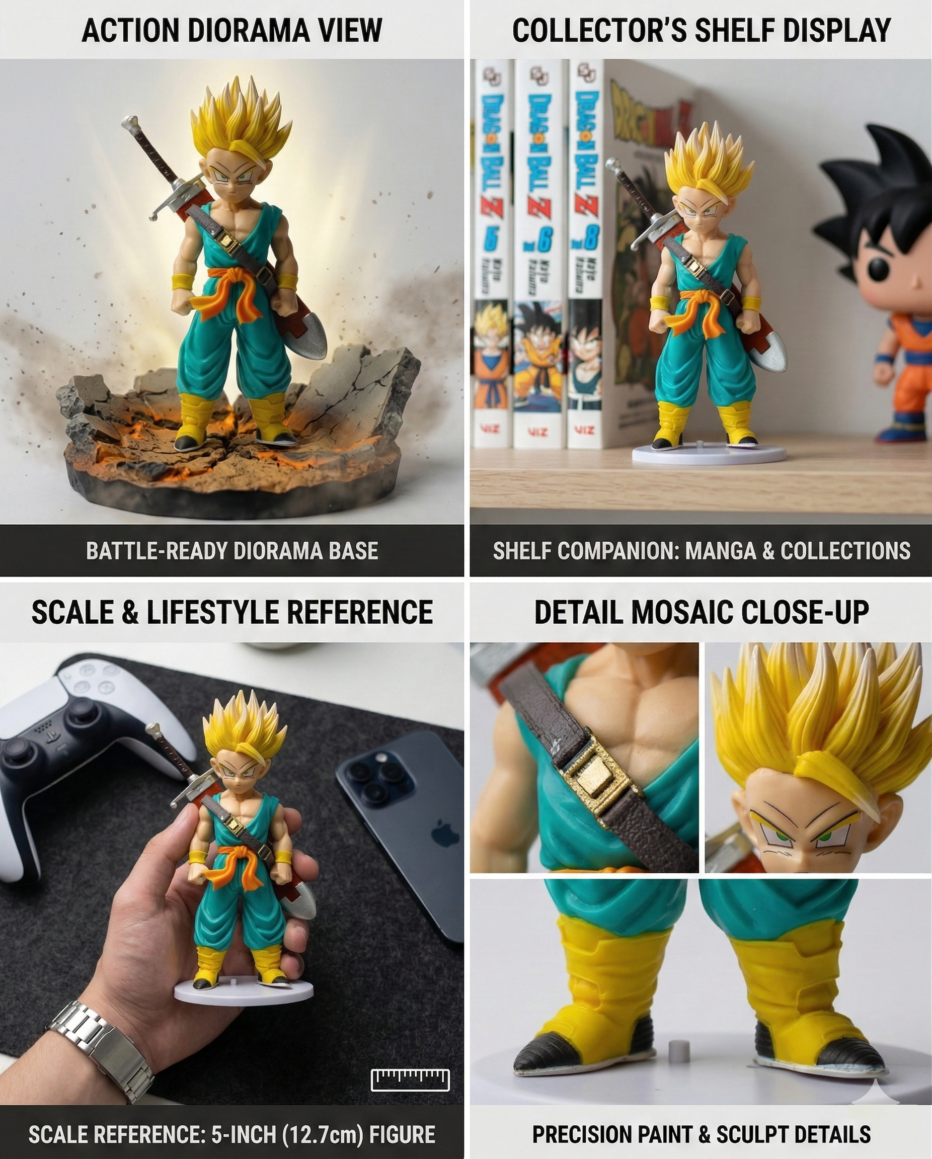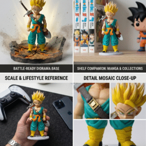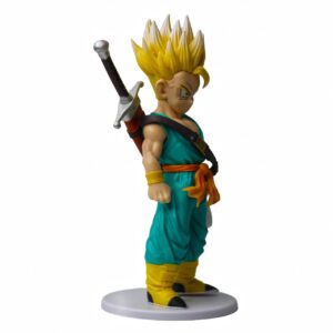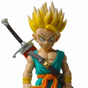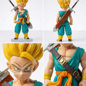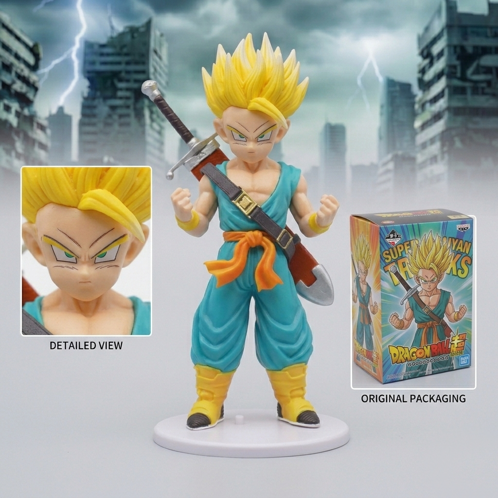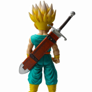• Precision Sculpting & Paint: Features high-contrast paint applications, specifically on the Super Saiyan golden hair and the metallic finish of Trunks’ sword, capturing anime-accurate details.