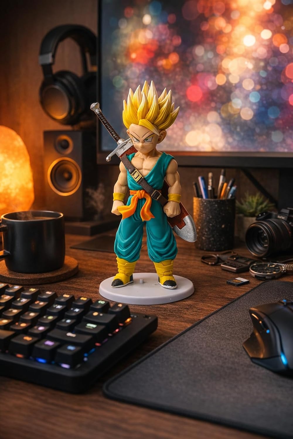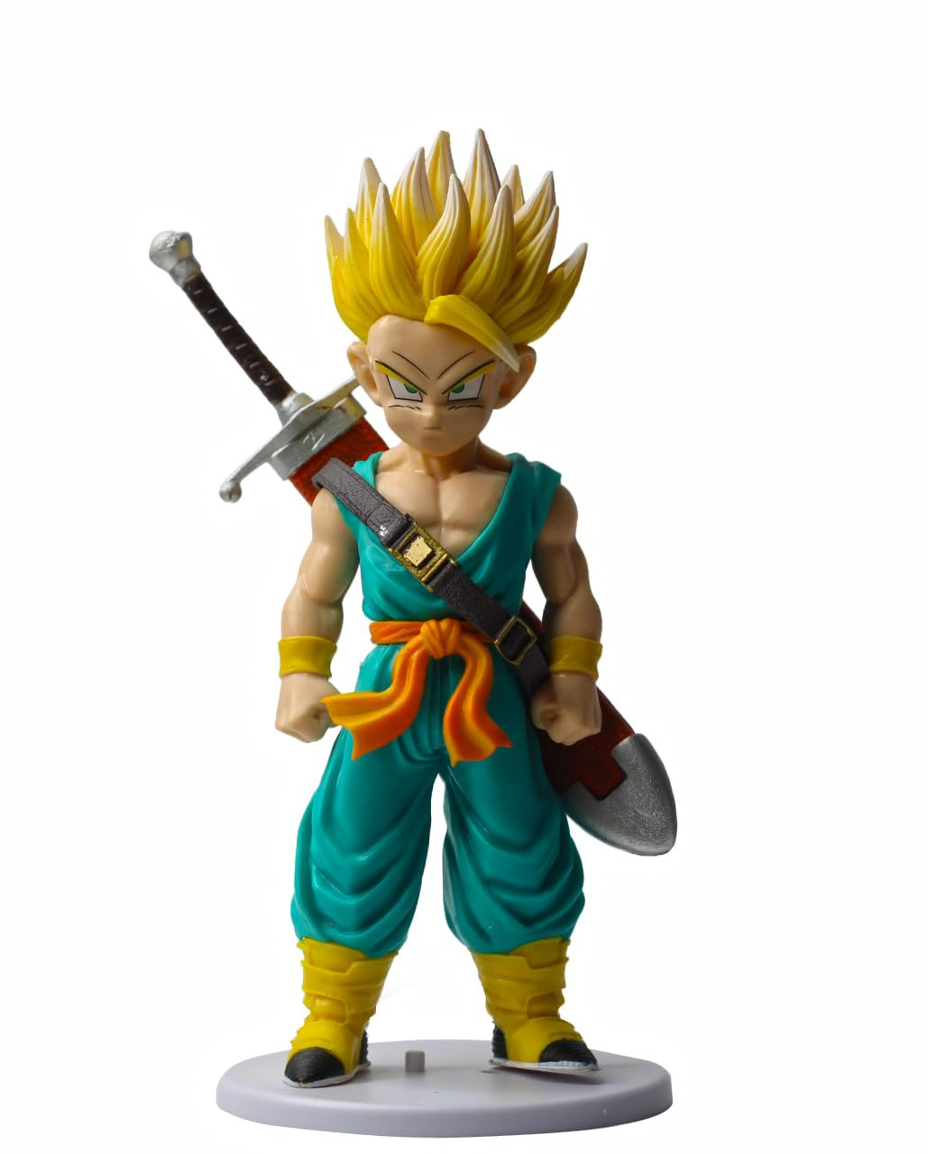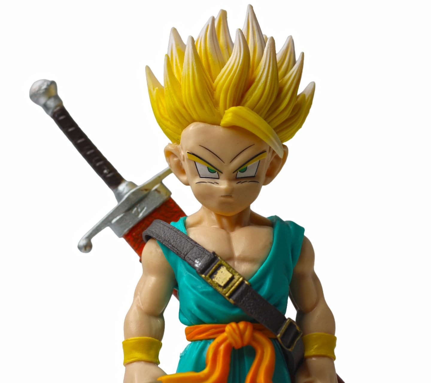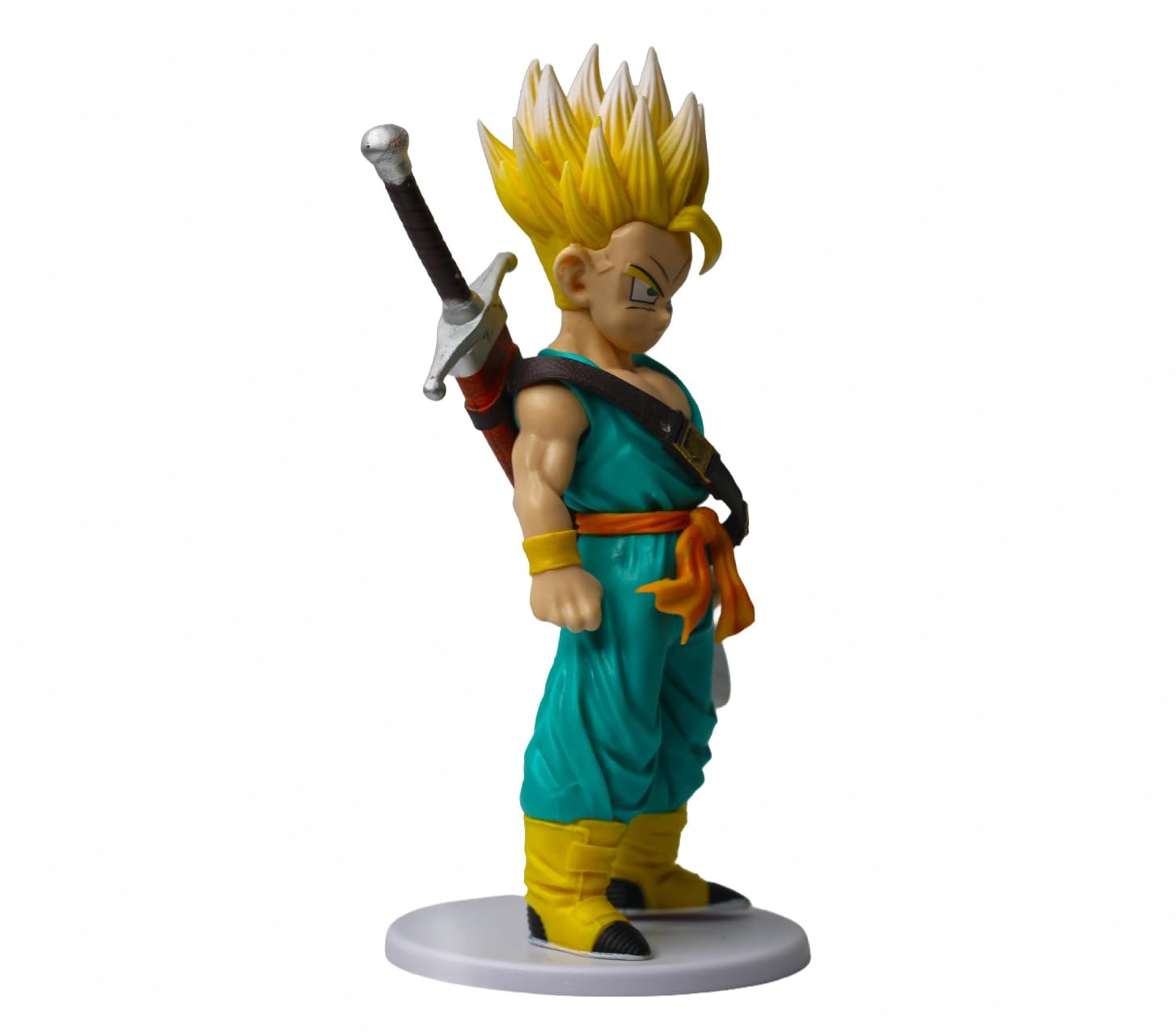 • Precision Sculpting & Paint: Features high-contrast paint applications, specifically on the Super Saiyan golden hair and the metallic finish of Trunks’ sword, capturing anime-accurate details.